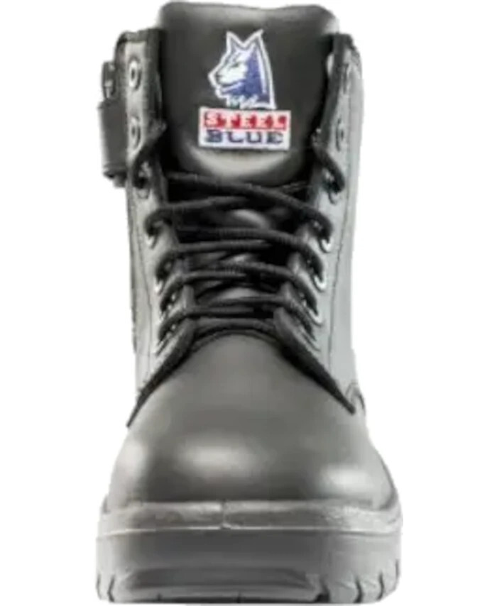 140mm derby style lace-up and zip ankle boot with padded collar and tongue,?? Premium water resistant leather and stitched in nlyon thread. Non-Corrosive Lacing, ??200J safety steel toe cap, ?True ladies fit - specially designed for women with a smaller in-step and shorter ankle length ? Industrial grade side zip for easy on and easy off, a rear zip gusset and clearing outlet which protects the foot from chemical exposure.? Durable polyurethane bump cap, This boot is lined with Baltico, which is a soft, non-abrasive, hydrophobic material that wicks perspiration away from the foot, enabling the skin to remain cool and dry, A full length footbed that is inserted into the footwear to offer additional support and comfort. This footbed is made from soft polyurethane that will retain its shape and thickness throughout the life of the boot, ??Heavy-duty, flexible anti-bacterial non-woven insole, Directly moulded Polyurethane midsole for greater shock absorption. Oil and acid resistant nitrile rubber outsole, which is heat resistant to 300oC (572oF).Our non-conductive footwear is designed to reduce the hazards due to accidental contact with live electrical circuits, electrically energized conductors or parts of apparatus up to 600 volts (AC). These Steel Blue shoes are clearly marked and have a distinct yellow colour plug in the rubber sole. This footwear is not suitable where anti-static properties are needed. Note: EH eries footwear is intended for use as secondary protective personal equipment. It is to be used in conjunction with primary protective equipment in areas and environments where there is a need to reduce the risk of electric shock due to accidental contact with live electric wires. EH Series: Electric Shock Resistant: 18000 volts at 60 Hz for 1 minute in dry conditions, leakage current of less than 1 milliamperes. Meets requirements for American Standard ASTM F 2413 - EH. Warning: Electrical shock resistance deteriorates rapidly in a wet environment and with wear.